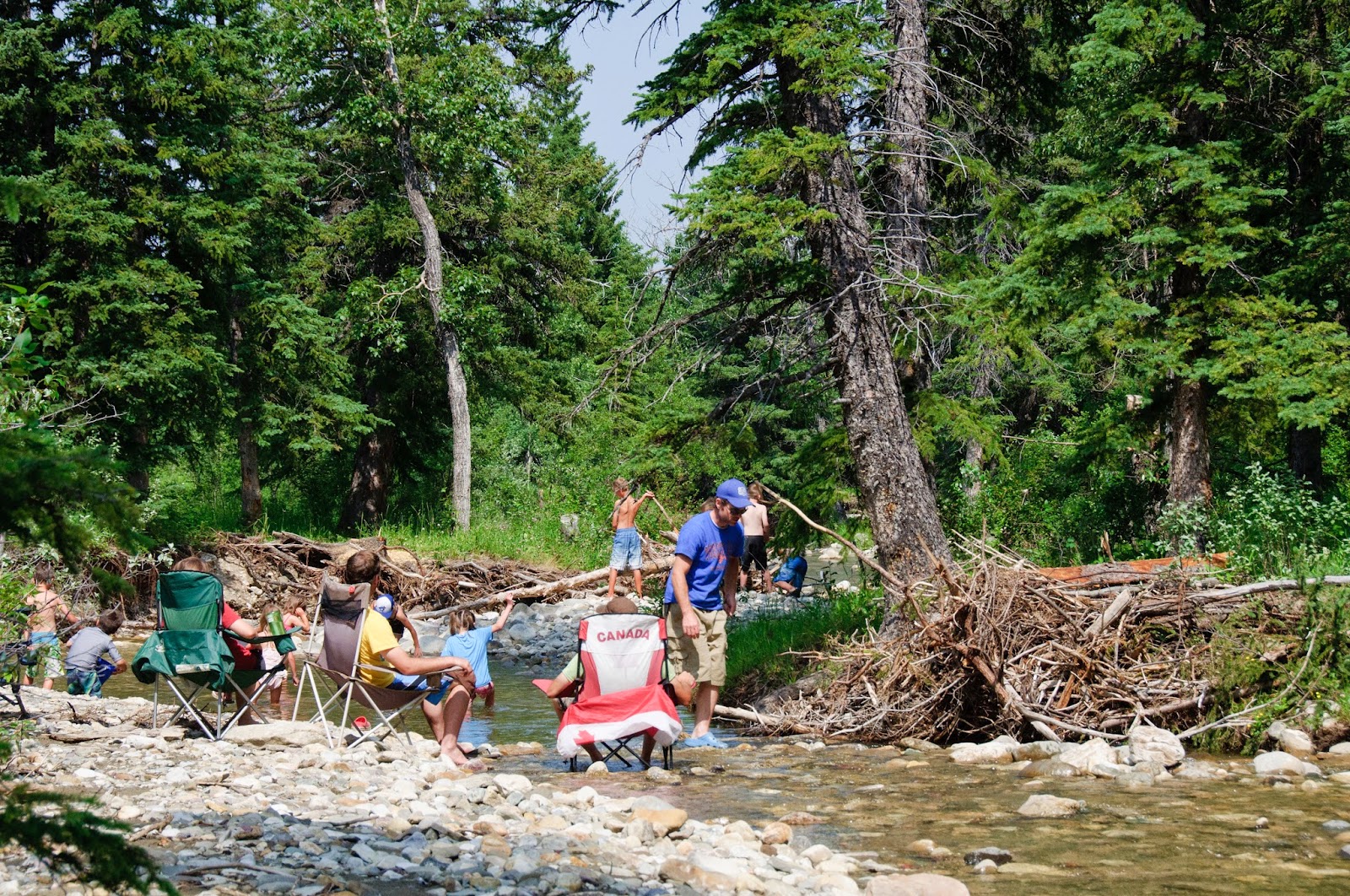 I think that one thing every good camping spot needs is a swimming hole, especially when it's hot outside! This year we all piled on quads and rode down to the creek, set up some camp chairs, stuck our feet in the water and let the kids play. It was a very pretty spot with a lot of green trees, clean water and places for the kids to explore. It wasn't too deep either so I was able to relax while the kids splashed around with everyone. The girls tried to find pretty rocks and built structures with the bigger rocks they found while the boys tried to make splashes throwing big rocks and sticks into the water.